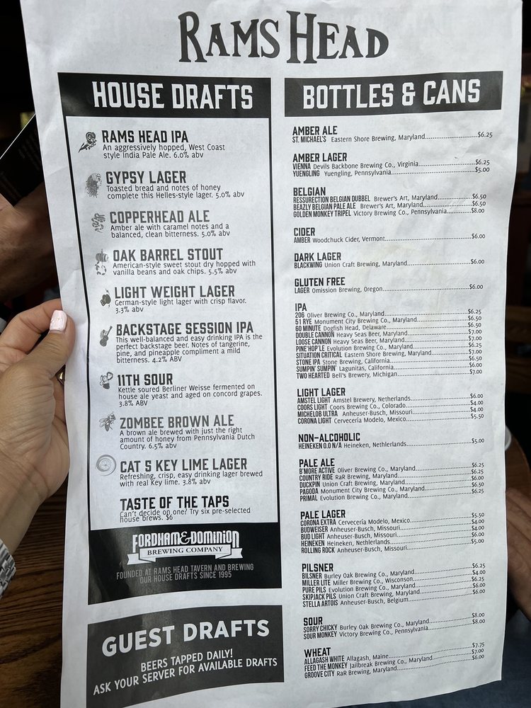 Rams Head Tavern, located in Annapolis, MD, offers a diverse menu spanning from Bavarian Pretzel Sticks to Black Truffle Burgers and Crab Cake Sandwiches. With a lively atmosphere, including live music and happy hour specials, this establishment is perfect for a night out with friends or family. The menu boasts options for all dietary preferences, including vegan and limited vegetarian options. The dishes are crafted with care, such as the Bourbonzola Brussels Sprouts and the Chicken & Brie Grilled Sandwich. The attention to detail in each dish elevates the dining experience, making Rams Head Tavern a must-try destination for those seeking delicious American cuisine in a vibrant setting.